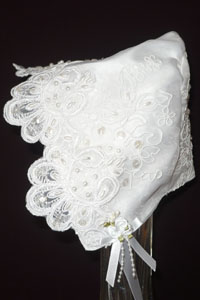 All Christening Gowns and Rompers are one-of-a-kind, sized to fit infants to 17 lbs - (0 � 3 months). Gowns include attached slip and matching bonnet. Gowns and Rompers come from a smoke/pet free home. If you would like a special ordered gown or romper in a different size please e-mail me. Mail@LindasChristeningGowns.com