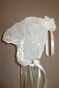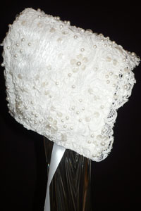 bonnet. Gown has a lovely lace beaded scalloped edge and beautifully