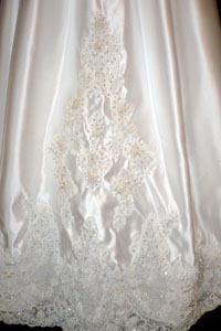 embroidery appliqu�s with pearls on the center front of the gown. The back