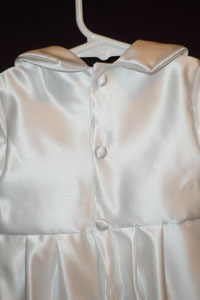 Custom made romper made of white silk dupioni with silk satin trim in white